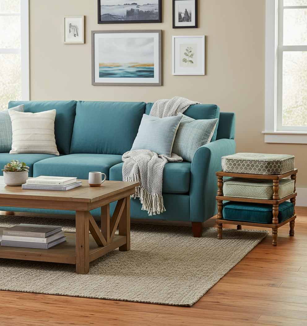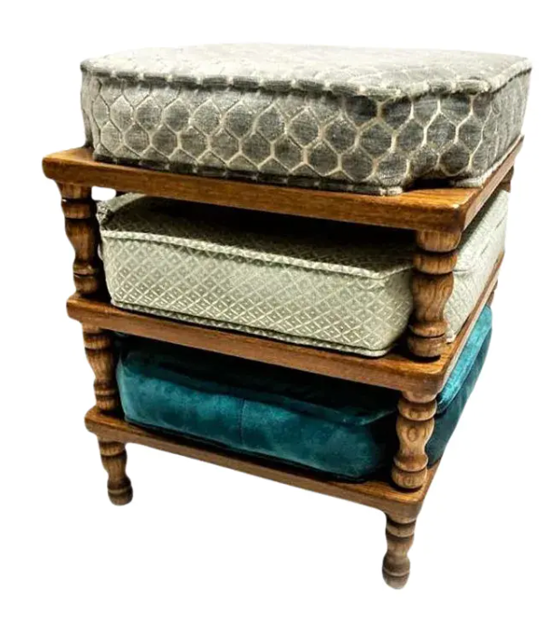 Mid 20th Century Stackable Ottomans With New Coordinating Upholstery - Set of 3